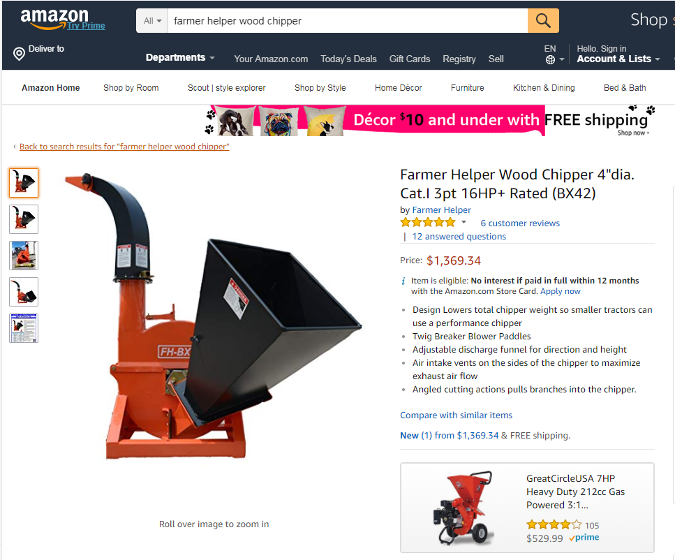Farmer Helper Wood Chipper on Amazon