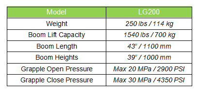 Simply connect the 1/2” NPT threaded hoses to your tractors actuated hydraulic connectorsLog grapples with sturdy and compact horizontal cylinder
