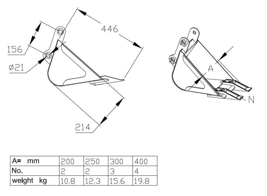 • 210 mm bucket